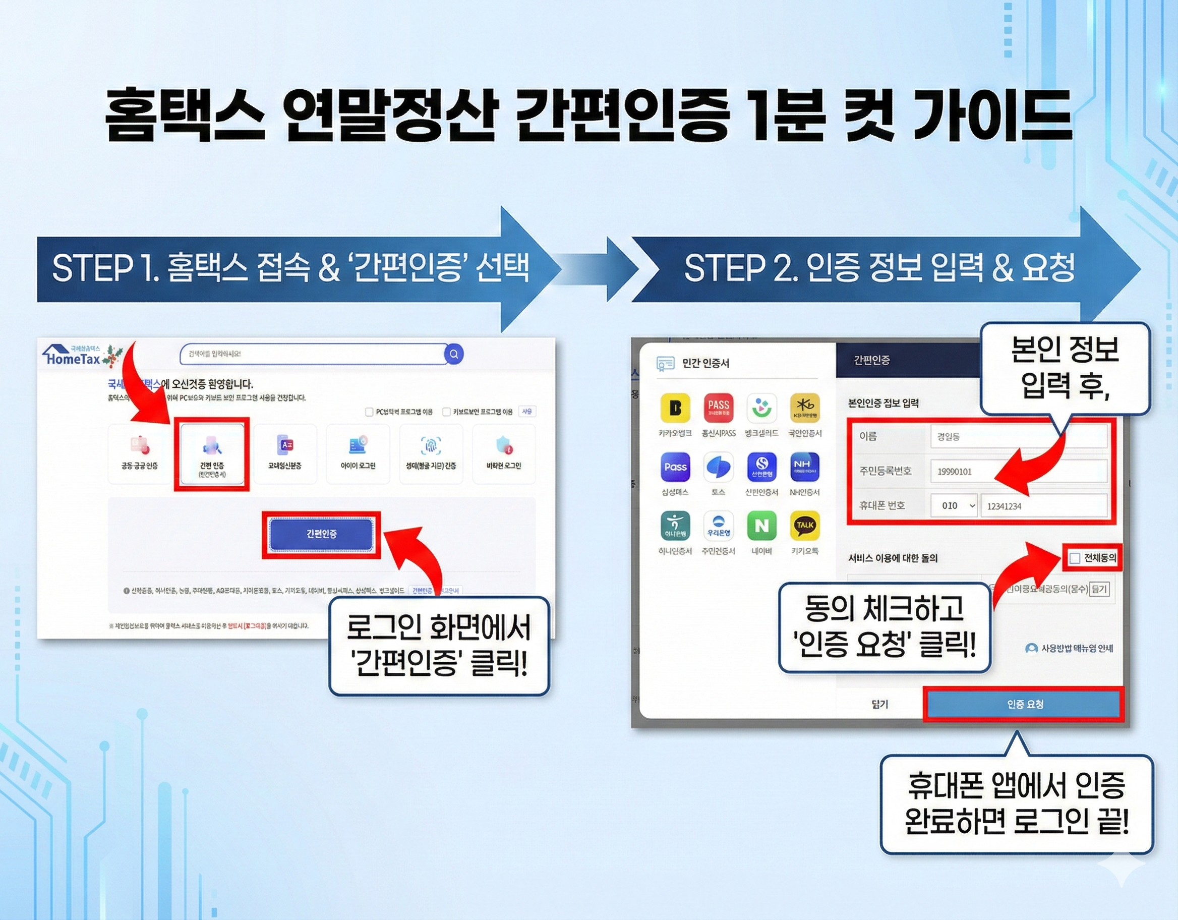 ② PC 홈택스 간편 인증 로그인 방법